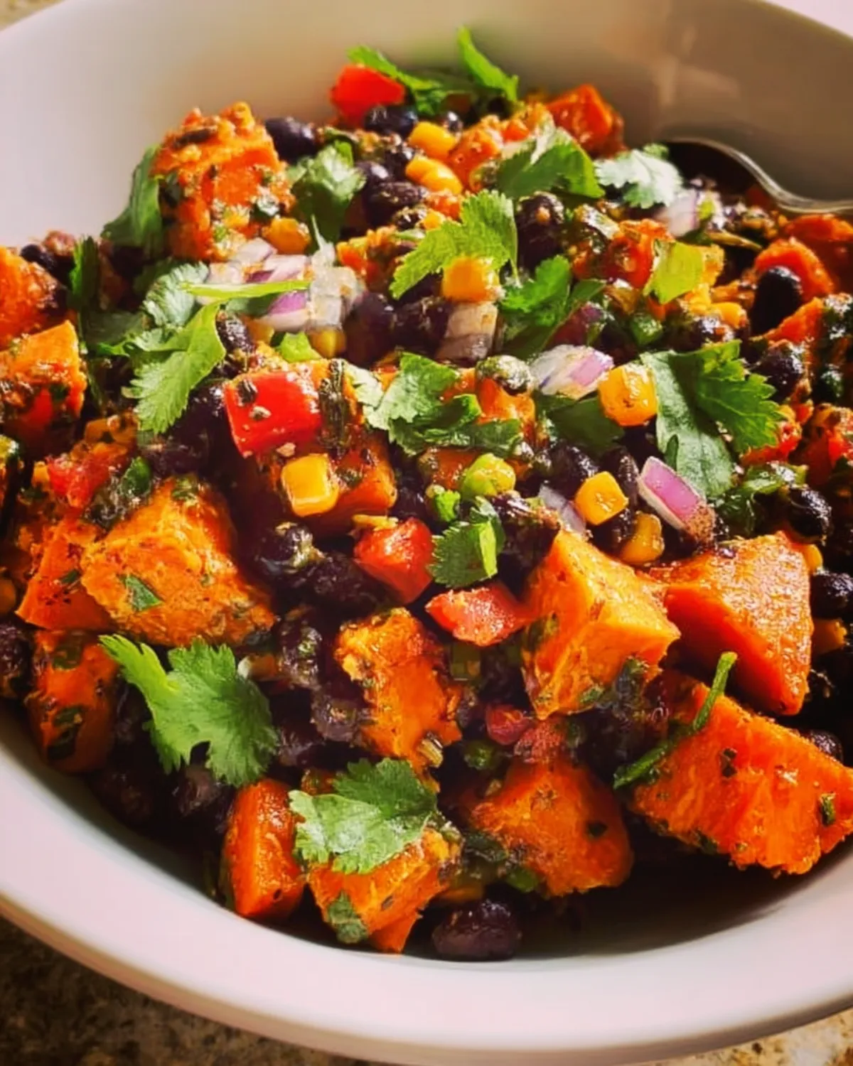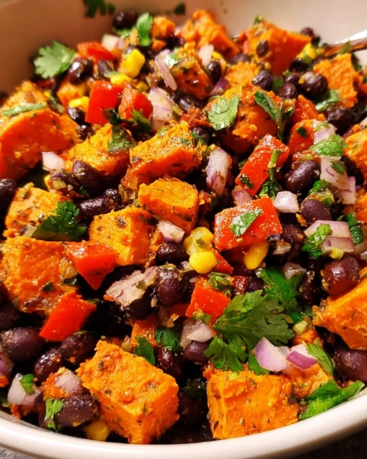Roasted Sweet Potato Black Bean Salad is a bright, colorful dish full of flavor and nutrients. It combines tender roasted sweet potatoes, hearty black beans, fresh vegetables, and a zesty lime dressing. This salad is not only delicious but also very easy to make. It can be served warm or cold, making it a flexible option for lunch or dinner.